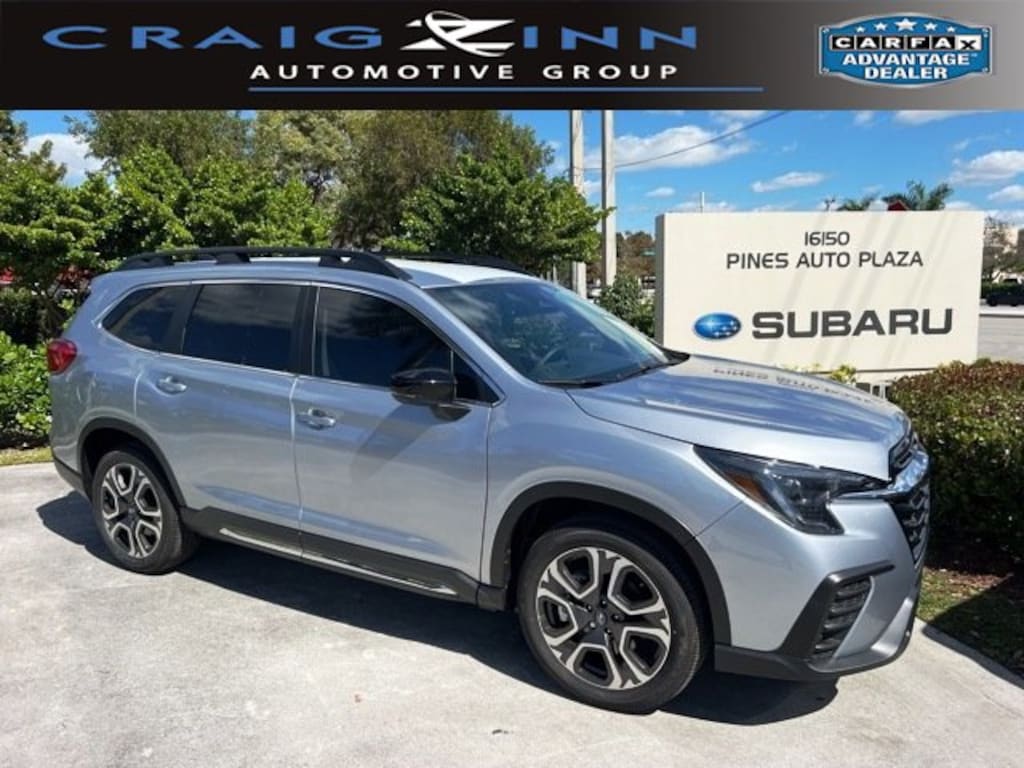 Silver Metallic 2025 Subaru Ascent Limited AWD Lineartronic CVT 2.4L 4-Cylinder DOHC 16V !!!*** HURRY ***!!!, *!*!*! DON'T MISS OUT !*!*!*, ** BEST COLOR COMBINATION **, 14 Speakers, 3rd row seats: bench, 4-Wheel Disc Brakes, ABS brakes, Aero Crossbar Set, Air Conditioning, Alloy wheels, AM/FM radio: SiriusXM with 360L, Apple CarPlay & Android Auto, Auto High-beam Headlights, Auto-Dimming Exterior Mirror w/Approach Light, Auto-dimming Rear-View mirror, Automatic temperature control, Brake assist, Bumpers: body-color, Cargo Tray, Compass, Delay-off headlights, Driver door bin, Driver vanity mirror, Dual front impact airbags, Dual front side impact airbags, Electronic Stability Control, Emergency communication system: MySubaru Safety (3-year free trial), Exterior Parking Camera Rear, Four wheel independent suspension, Front anti-roll bar, Front Bucket Seats, Front Center Armrest, Front dual zone A/C, Front fog lights, Front reading lights, Fully automatic headlights, Garage door transmitter: HomeLink, harman/kardon® Speakers, Heated door mirrors, Heated Front Bucket Seats, Heated front seats, Heated rear seats, Heated steering wheel, Illuminated entry, Knee airbag, Leather Shift Knob, Leather steering wheel, LED Upgrade, Low tire pressure warning, Memory seat, Navigation System, Occupant sensing airbag, Outside temperature display, Overhead airbag, Overhead console, Panic alarm, Passenger door bin, Passenger vanity mirror, Perforated Leather-Trimmed Upholstery, Power door mirrors, Power driver seat, Power Liftgate, Power moonroof, Power passenger seat, Power steering, Power windows, Radio data system, Radio: Subaru 11.6 Multimedia System w/Navigation, Rear air conditioning, Rear anti-roll bar, Rear reading lights, Rear window defroster, Rear window wiper, Reclining 3rd row seat, Remote keyless entry, Security system, Speed control, Speed-sensing steering, Split folding rear seat, Spoiler, Steering wheel mounted audio controls, Tachometer, Telescoping steering wheel, Tilt steering wheel, Traction control, Trip computer, Turn signal indicator mirrors, Variably intermittent wipers, Wheels: 20 x 7.5 J Dk Gray Alloy w/Machine Finish, Wireless Charger.