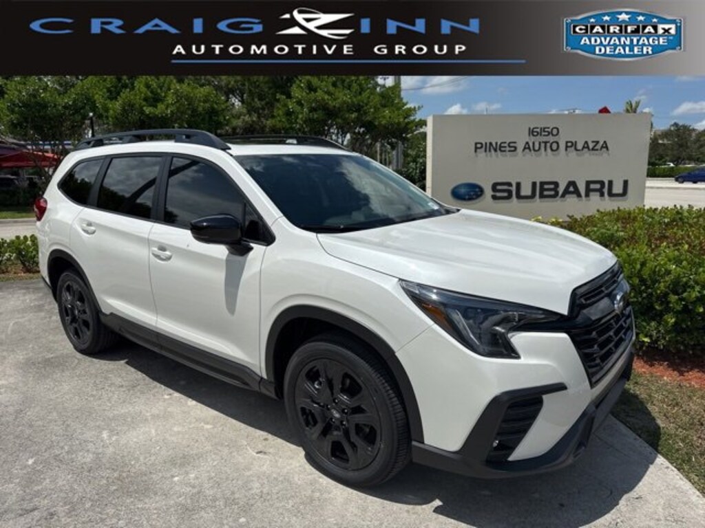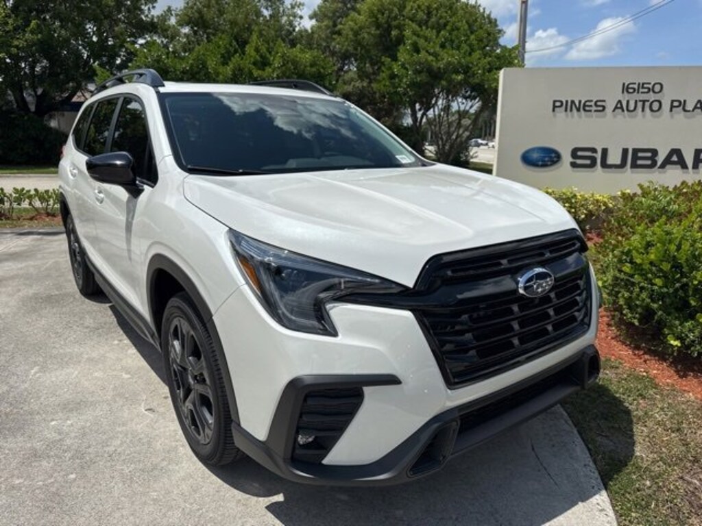White Pearl 2025 Subaru Ascent Onyx Edition Touring AWD Lineartronic CVT 2.4L 4-Cylinder DOHC 16V !!!*** HURRY ***!!!, *!*!*! DON'T MISS OUT !*!*!*, ** BEST COLOR COMBINATION **, 14 Speakers, 3rd row seats: bench, 4-Wheel Disc Brakes, ABS brakes, Aero Crossbar Set, Air Conditioning, Alloy wheels, AM/FM radio: SiriusXM with 360L, Apple CarPlay & Android Auto, Auto High-beam Headlights, Auto-Dimming Exterior Mirror w/Approach Light, Auto-dimming Rear-View mirror, Automatic temperature control, Brake assist, Bumpers: body-color, Cargo Tray, Compass, Delay-off headlights, Driver door bin, Driver vanity mirror, Dual front impact airbags, Dual front side impact airbags, Electronic Stability Control, Emergency communication system: MySubaru Safety (3-year free trial), Exterior Parking Camera Rear, Four wheel independent suspension, Front anti-roll bar, Front Bucket Seats, Front Center Armrest, Front Door Projector Lights, Front dual zone A/C, Front fog lights, Front reading lights, Fully automatic headlights, Garage door transmitter: HomeLink, harman/kardon® Speakers, Heated & Ventilated Front Bucket Seats, Heated door mirrors, Heated front seats, Heated rear seats, Heated steering wheel, HVAC memory, Illuminated entry, Knee airbag, Leather Shift Knob, Leather steering wheel, LED Upgrade, Low tire pressure warning, Memory seat, Navigation System, Occupant sensing airbag, Outside temperature display, Overhead airbag, Overhead console, Panic alarm, Passenger door bin, Passenger vanity mirror, Perforated Nappa Leather-Trimmed Upholstery, Power door mirrors, Power driver seat, Power Liftgate, Power moonroof, Power passenger seat, Power steering, Power windows, Radio data system, Radio: Subaru 11.6 Multimedia System w/Navigation, Rain sensing wipers, Rear air conditioning, Rear anti-roll bar, Rear reading lights, Rear window defroster, Rear window wiper, Reclining 3rd row seat, Remote keyless entry, Security system, Speed control, Speed-sensing steering, Split folding rear seat, Spoiler, Steering wheel mounted audio controls, Tachometer, Telescoping steering wheel, Tilt steering wheel, Traction control, Trip computer, Turn signal indicator mirrors, Variably intermittent wipers, Ventilated front seats, Wheels: 20 x 7.5 J Aluminum Alloy w/Black Finish, Wireless Charger.