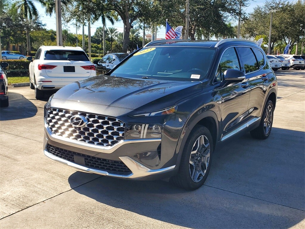 Portofino Gray 2023 Hyundai Santa Fe Hybrid Limited Clean CARFAX. CARFAX One-Owner. AWD 6-Speed Automatic with Shiftronic I4 WELCOME TO ACURA OF PEMBROKE PINES...Call us today at 954-985-2424 and ask for any Sales Manager. We are the largest Acura dealership in the Southeast USA for Eleven years in a row. We are a volume dealership selling Acura Certified and other Quality pre-owned vehicles at volume prices. Call us today as inventories are constantly changing, we will find the right car at the right price! Special Factory APR financing available through Acura Financial Services.. Price subject to $989.00 reconditioning fee. KBB Fair Market Range Low: $27,414